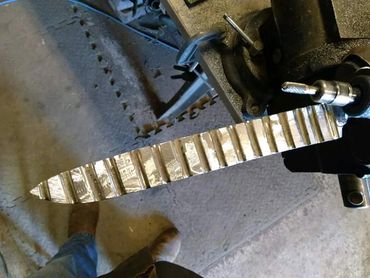 I have been making knives for 39 years. I began doing stock removal with the crudest of tools when in high school, but while in the Air Force a friend taught me to forge knives. I was hooked! I'm sure that my overwhelming attraction to forging was in some part due to the hypnotic glow of the fire, but most of all I have a natural interest